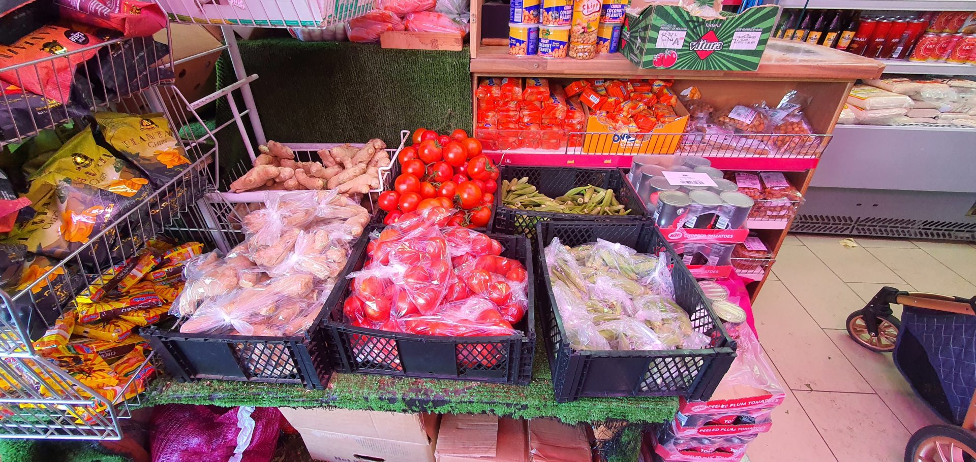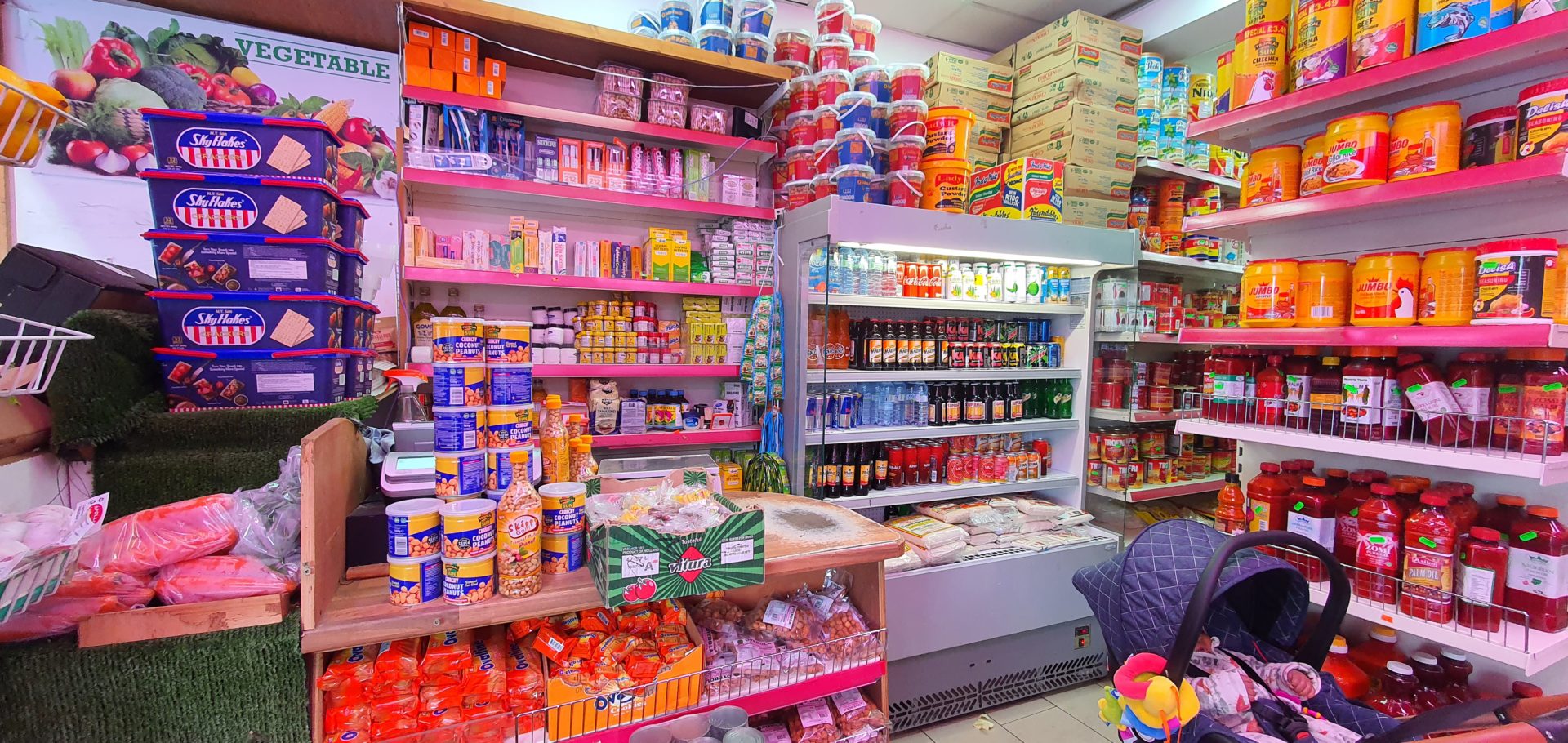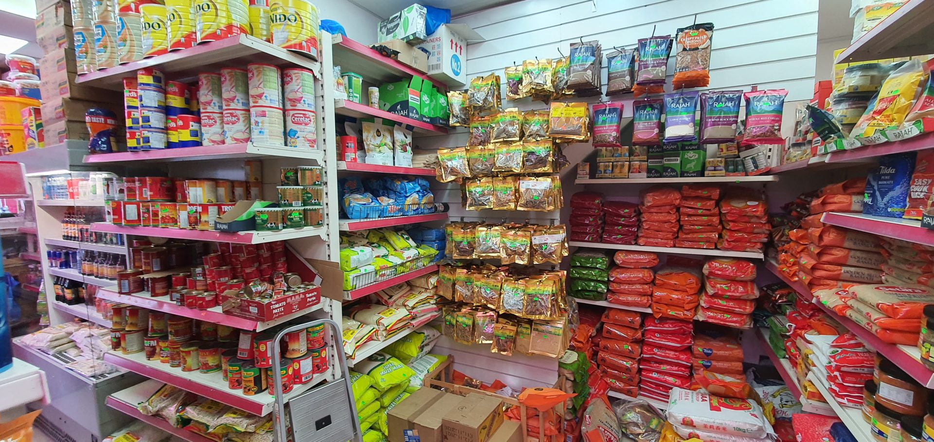 We sell rice, tinned food.